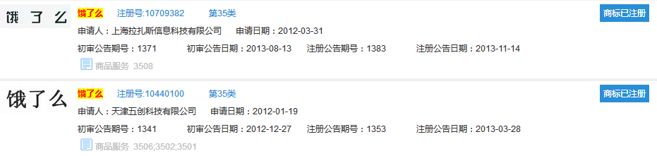 其实“饿了么”最初也没有一次就注册成功,因为“x了么”这一类的商标格式太多了,所以也因缺乏显著性而导致驳回,但是后来却复审成功了,根本原因就是因为“饿了么”在商标复审时,已经有大量的使用,在潜移默化中,人们提起“饿了么”就会想到外卖,就因为它获得了基本属性,才有了核准注册。