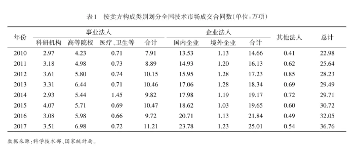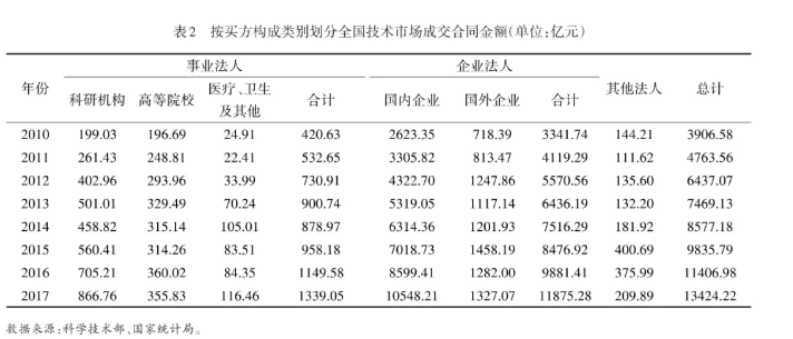 2)细化技术市场交易中的企业类型,通过精准分析得出中国技术交易主体现状与市场机制。