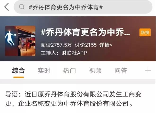 乔丹体育更名的消息一经报出就受到广大网友的关注并登上微博热搜.