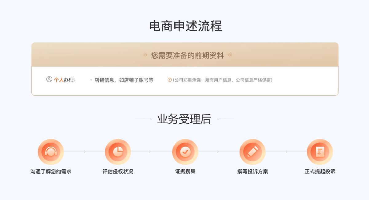 针对店铺品牌、产品被投诉侵权,提供一站式申诉服务,提高申诉成功率!