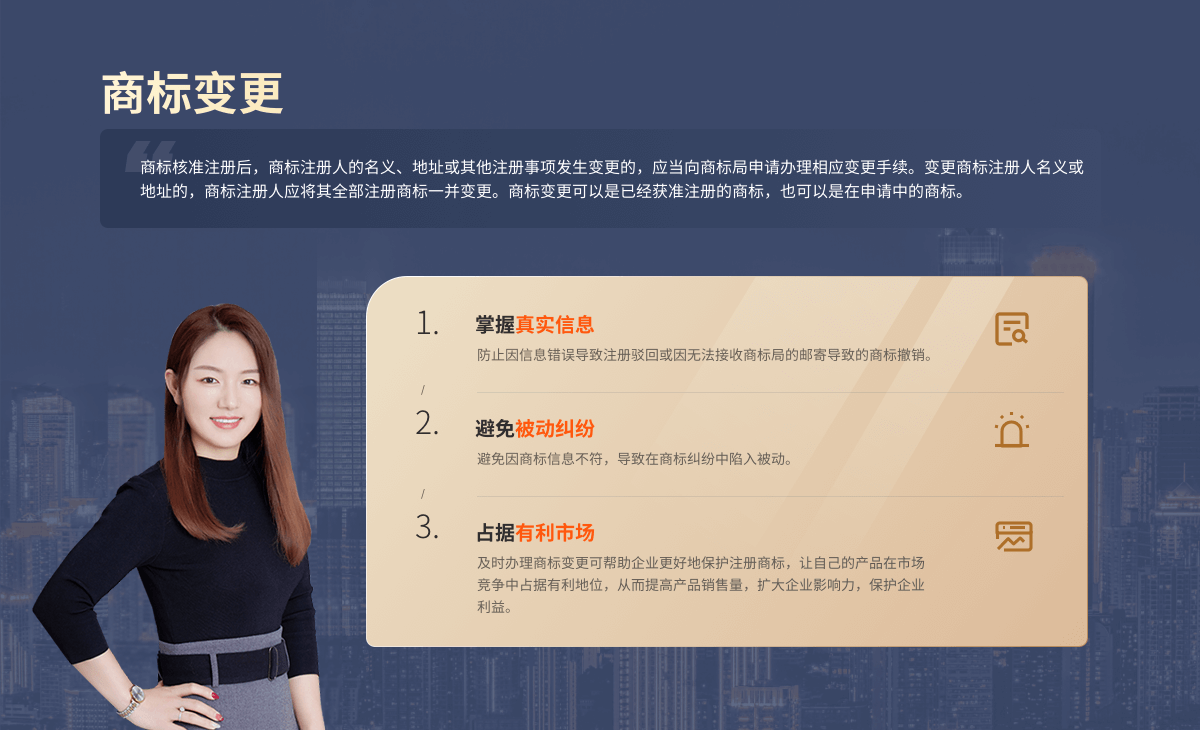 如需变更注册人名义、登记地址等注册事项,须向商标局提出申请